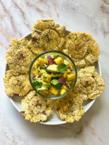This sauce is delicious, herby, fresh, and zesty! You can use it as a dip or drizzle it on your meal. In the picture below I used homemade sazon to season tofu and then topped the tofu with chimichurri.