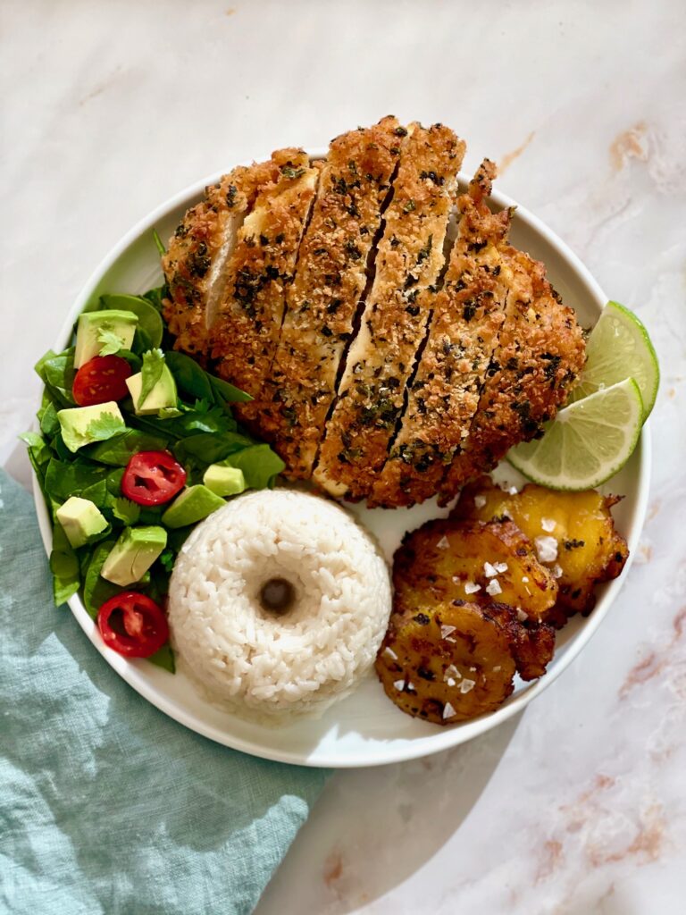 • In another bowl, add all the breading ingredients and whisk to combine evenly.