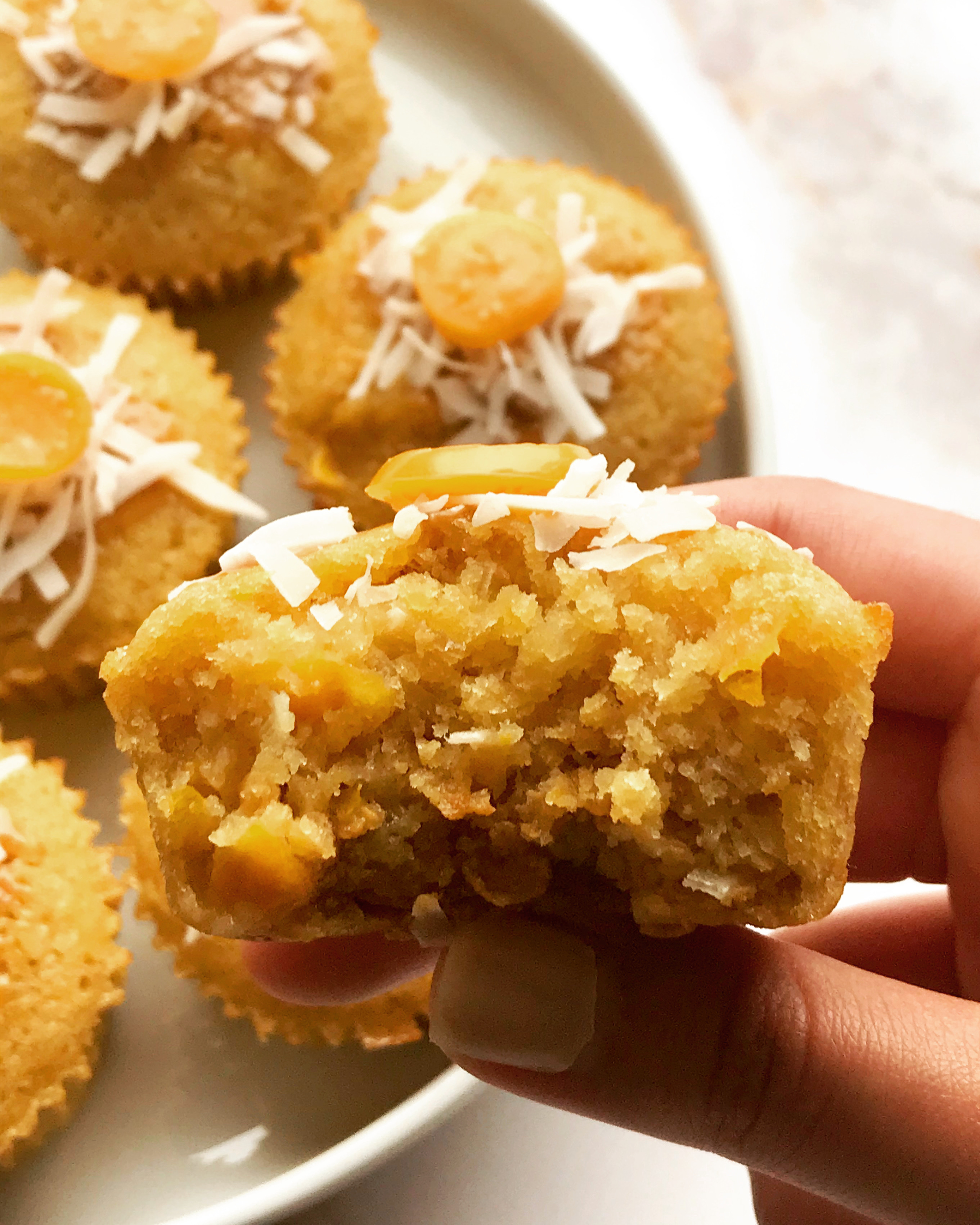 These muffins are moist, fluffy, fruity, and have the perfect amount of sweetness. The coconut adds a nice crunch and compliments the taste of the uchuva. The arequipe (aka dulce de leche) ties in all the flavors and makes this dish taste like a Colombian dessert.